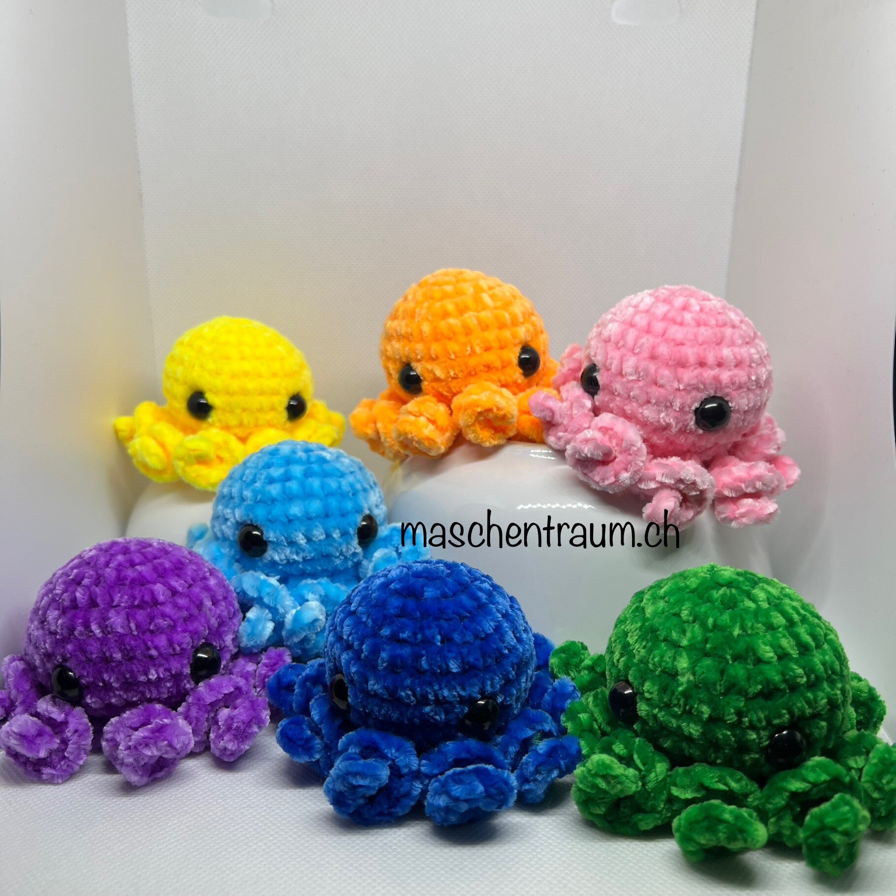 Dieser süsse, gehäkelte Oktopus ist mit seinen 8 cm ein toller Begleiter der in jede Tasche passt.