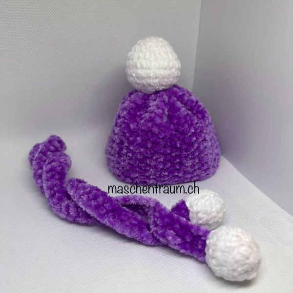 Mit dem weichen Schal und der Mütze ist er auch für kältere Tage immer gut ausgerüstet.